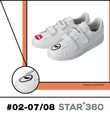 Fresh off Patrick’s latest collection is the Ocean pop sneakers, a minimalist and clean-looking tennis-inspired sneaker that’s made from smooth leather. Features adorable lip and eye embroidery for the mood makers. Perforations along the side of the sneaker add breathability and a touch of fine detailing to this heritage shoe.